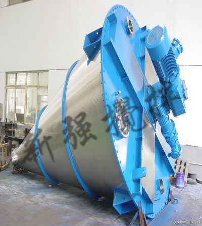 3. 螺旋部分:筒體內兩只非對稱排列的螺旋作自、公轉行星運動時,在較大范圍翻動物料,使物料達到均勻混合。